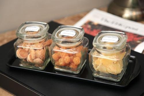 a selection of beverages and snacks for your enjoyment.